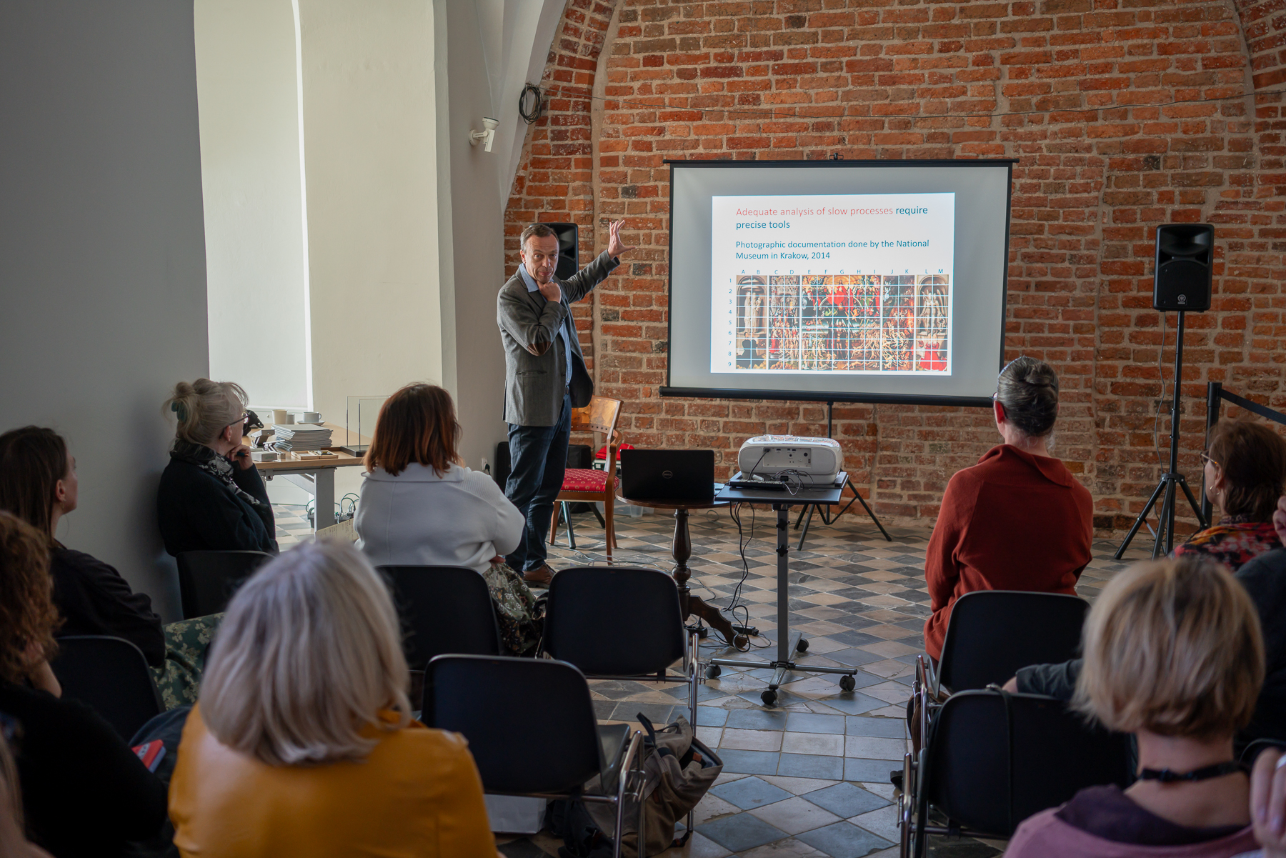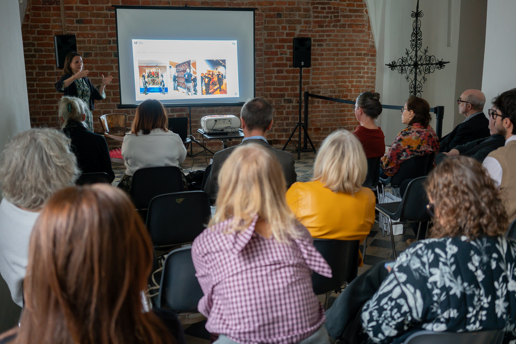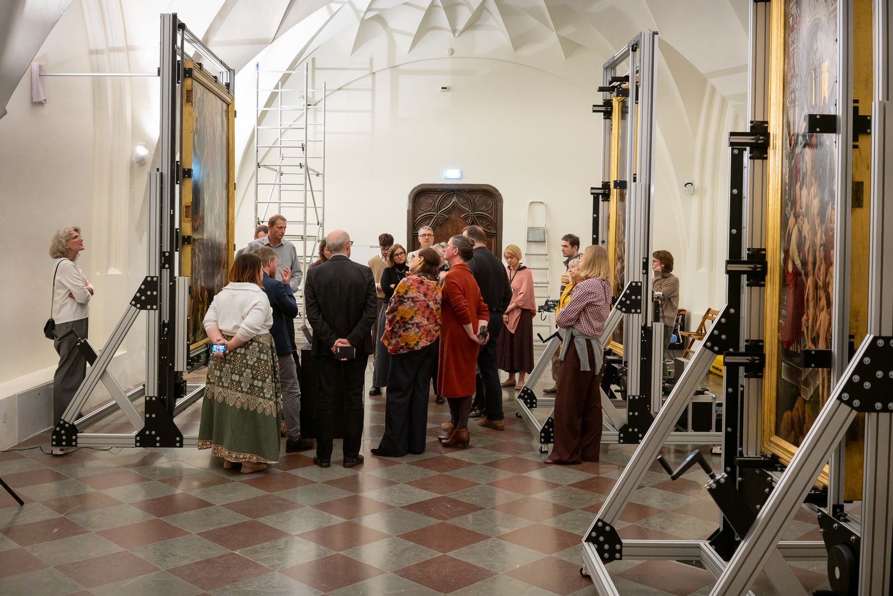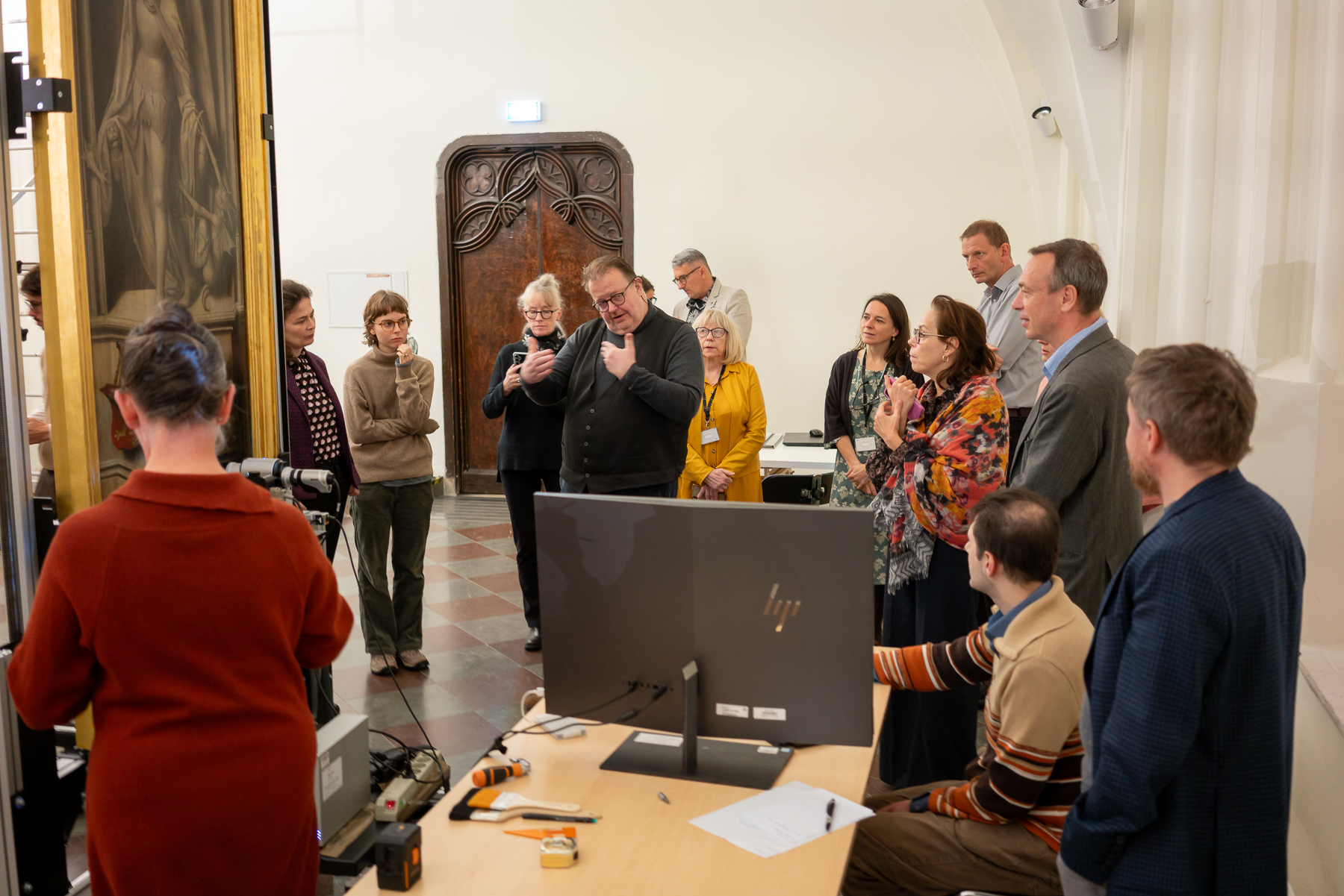 Obrady koncentrowały się na najważniejszym dla nas obecnie zagadnieniu, czyli zapewnieniu tryptykowi nowego, bezpiecznego, a jednocześnie bardziej dostępnego dla zwiedzających, sposobu ekspozycji. Korzystając z bogatego doświadczenia naszych gości, mogliśmy skonsultować rozwiązania, które chcielibyśmy wdrożyć. Na obradach zaprezentowano także stan dotychczasowych prac nad projektem, w tym badań nieinwazyjnych prowadzonych przy obrazie. Niebawem planujemy organizację takiego spotkania także dla zwiedzających.