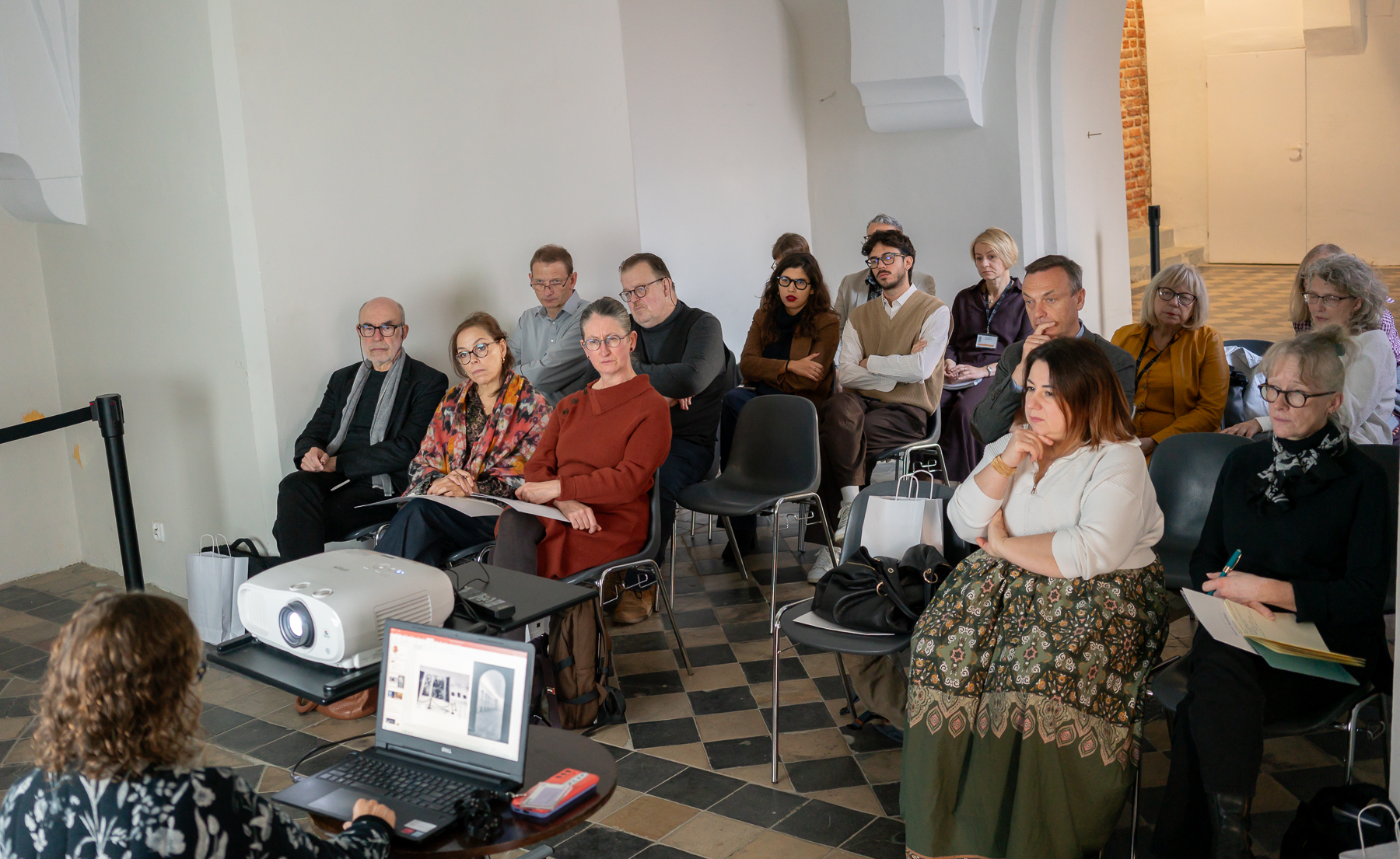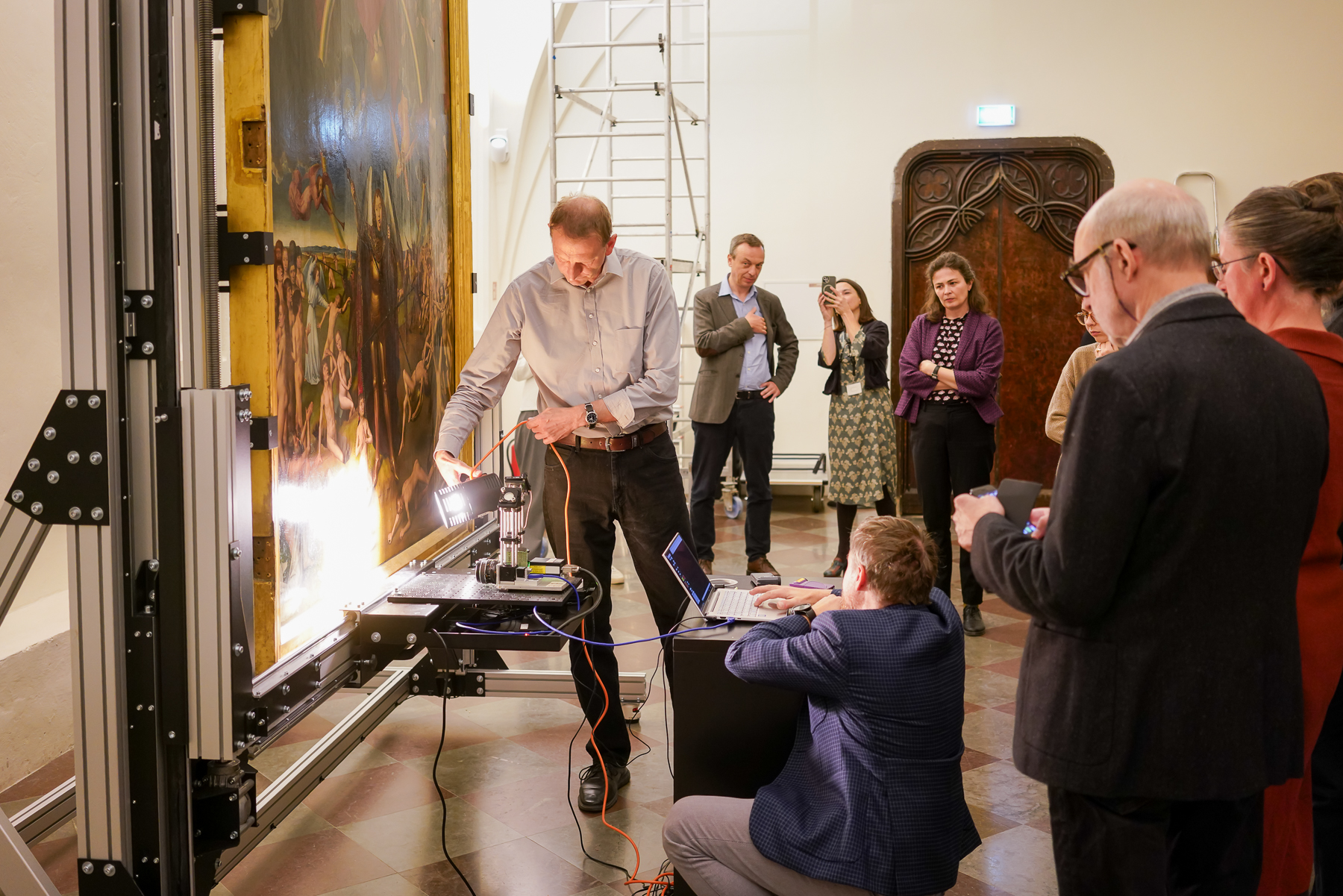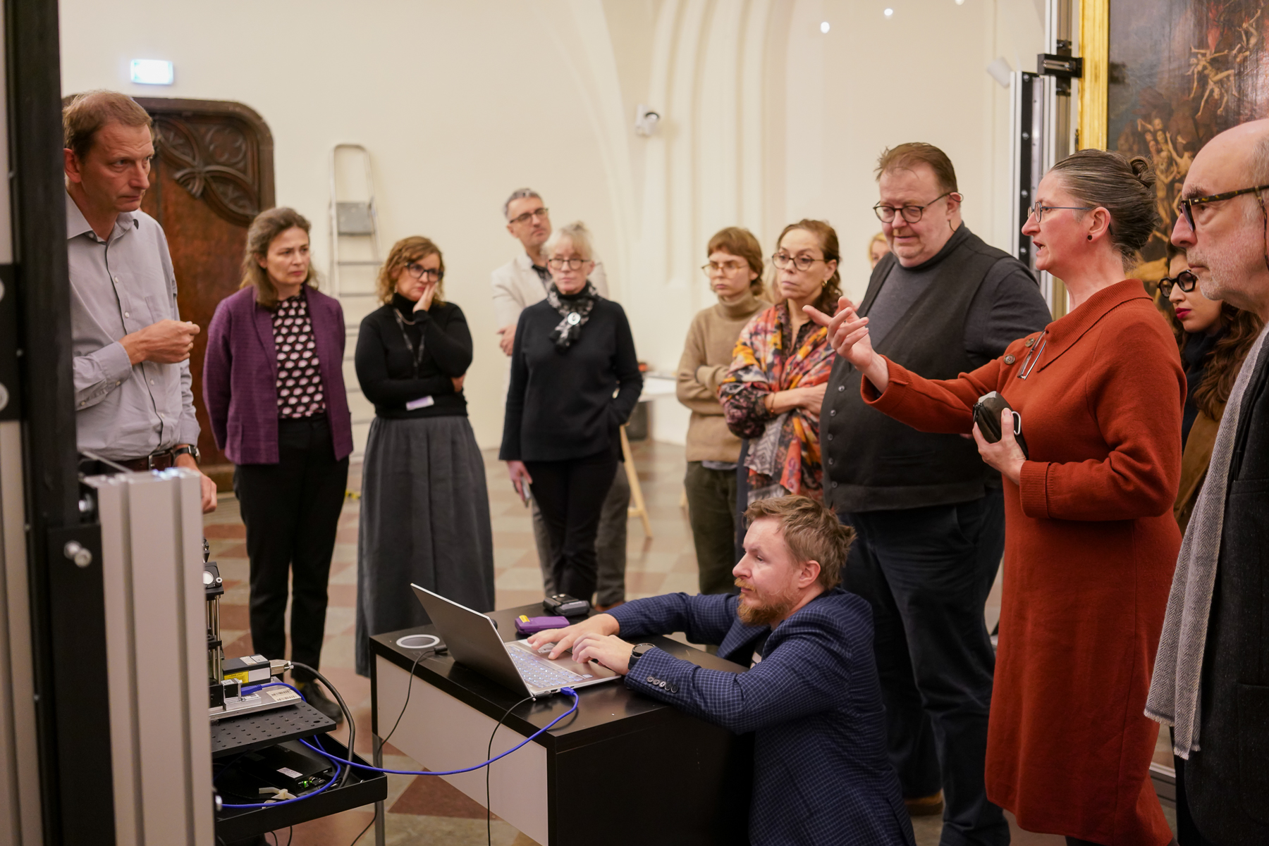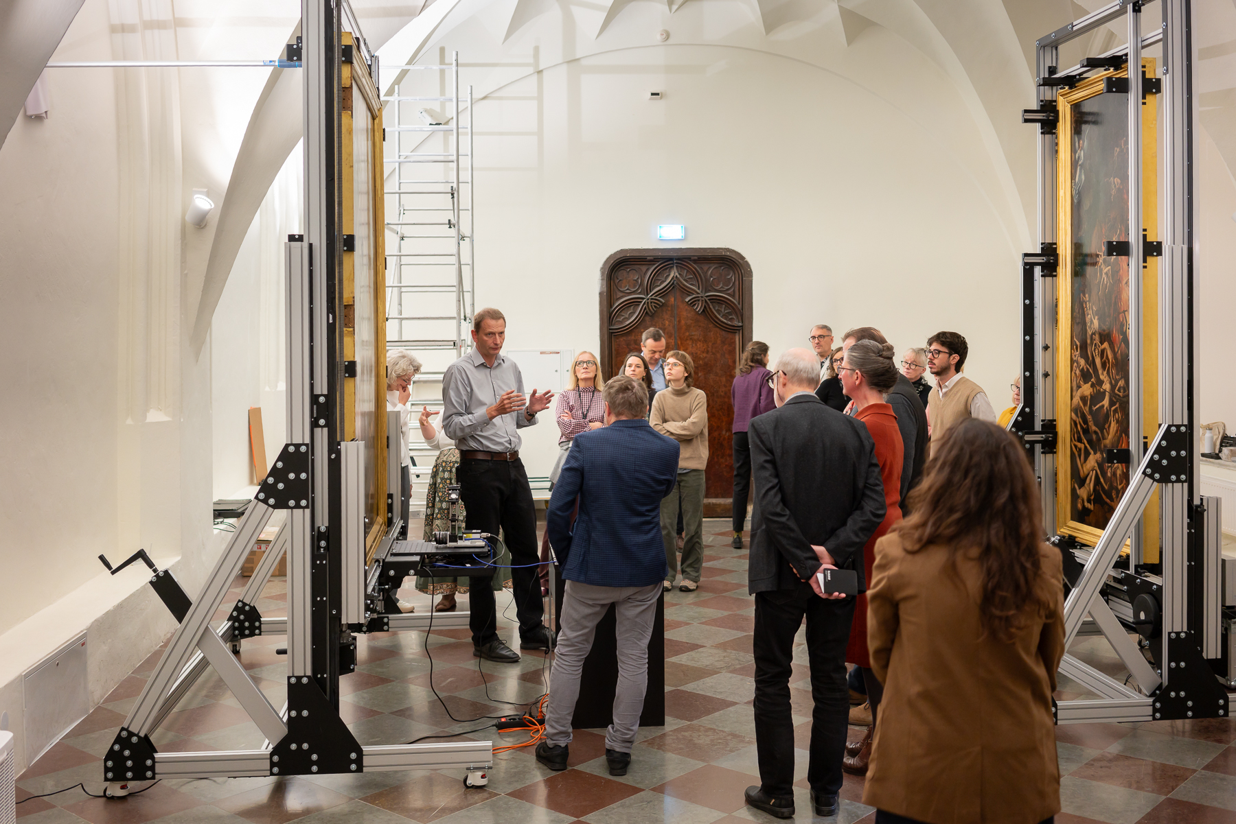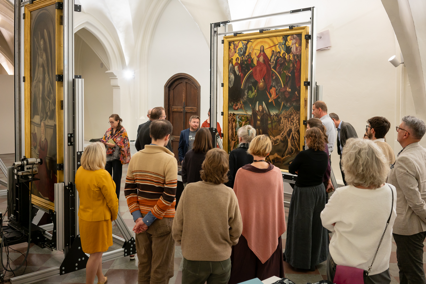 Obrady koncentrowały się na najważniejszym dla nas obecnie zagadnieniu, czyli zapewnieniu tryptykowi nowego, bezpiecznego, a jednocześnie bardziej dostępnego dla zwiedzających, sposobu ekspozycji. Korzystając z bogatego doświadczenia naszych gości, mogliśmy skonsultować rozwiązania, które chcielibyśmy wdrożyć. Na obradach zaprezentowano także stan dotychczasowych prac nad projektem, w tym badań nieinwazyjnych prowadzonych przy obrazie. Niebawem planujemy organizację takiego spotkania także dla zwiedzających.
