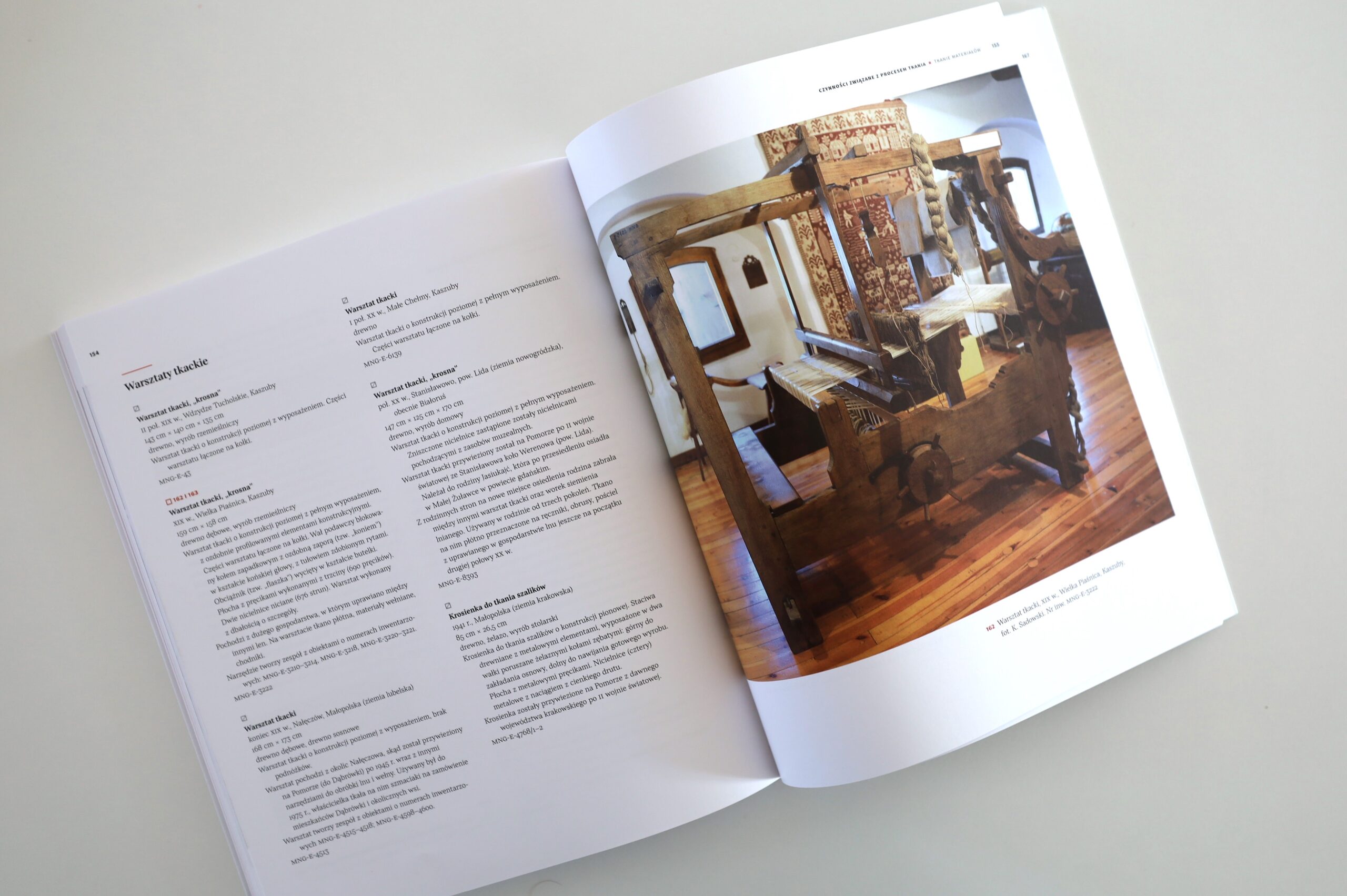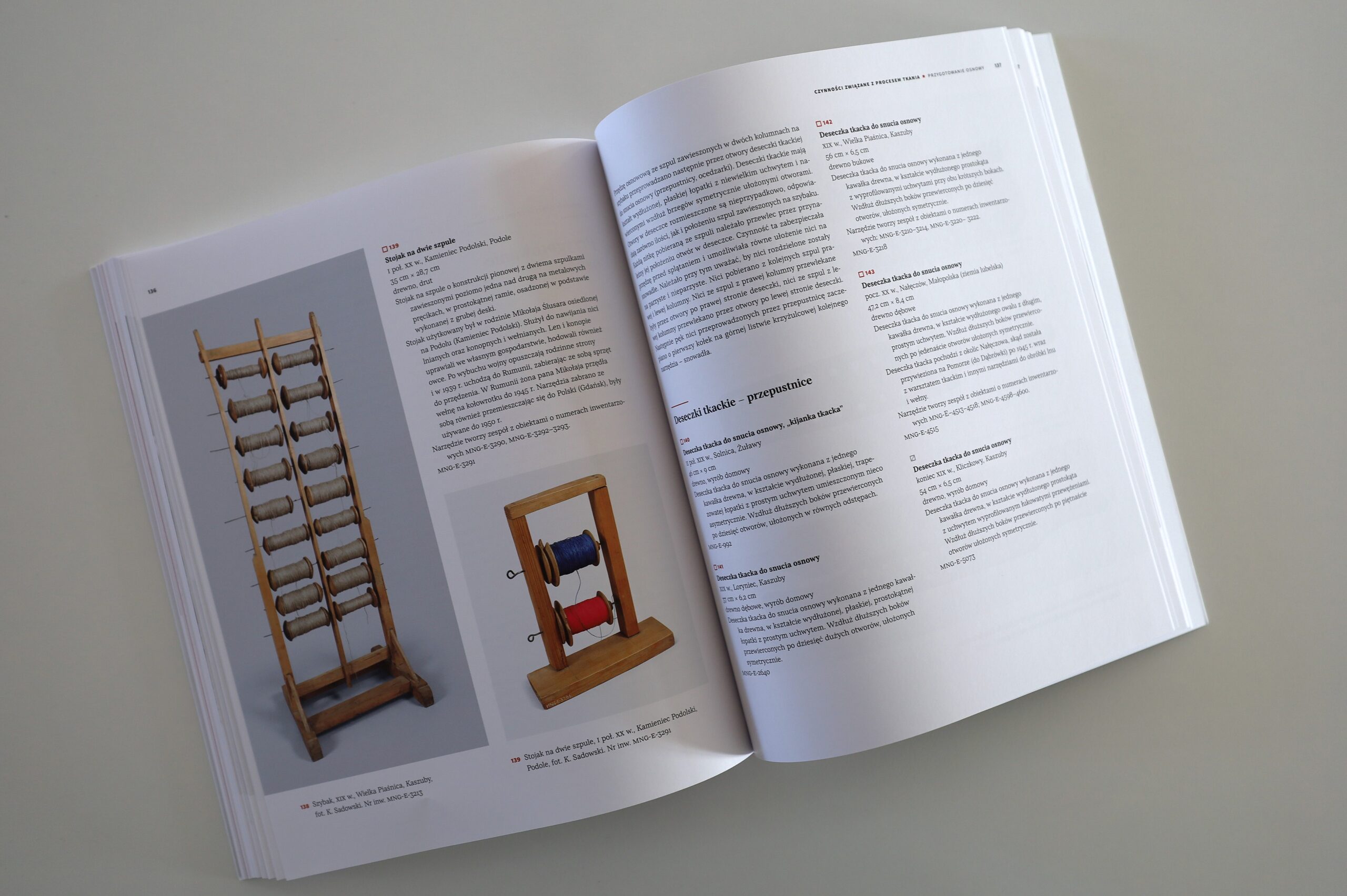 Część katalogowa obejmuje wszystkie obiekty związane z rzemiosłem tkackim znajdujące się w zbiorach Pracowni Rzemiosła Oddziału Etnografii. Została podzielona na trzy części tematyczne, odpowiadające kolejnym etapom pracy tkacza: pozyskiwaniu i wstępnej obróbce włókna, wytwarzaniu nici z włókien oraz czynnościom związanym z procesem tkania. Poszczególne rozdziały składają się z podrozdziałów poprzedzonych omówieniem danego etapu technologicznego. Wszystkie obiekty zostały nazwane i opatrzone objaśnieniem ich funkcji, a najbardziej reprezentatywne spośród nich zilustrowano.